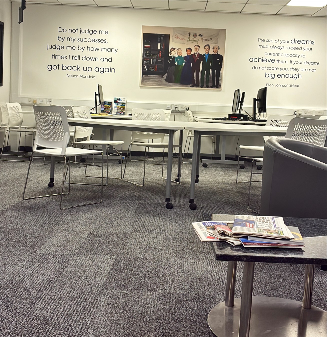 Initially, I was concerned that I would have nowhere to go and relax between lectures; however, since I joined in September, I have always been going to the first floor of the library, which always has available seating. It is not entirely silent, so I can either relax, talk to friends, have something to eat, or catch up on some light studying. Before I get there, though, I always buy something to eat at the campus Co-op, which is conveniently right below the first floor of the library. To access the first floor of the library, scan your student ID; the process is quick and easy.